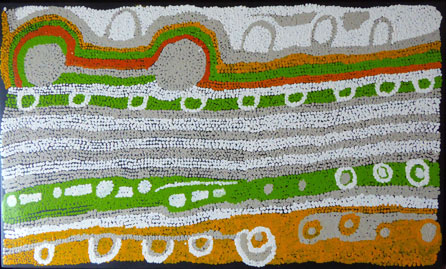 それゆえ、無文字社会で暮らすアボリジニの人々にとって「絵」は芸術のための芸術ではなくまさに「生きる」ためのバイブルだったのです。