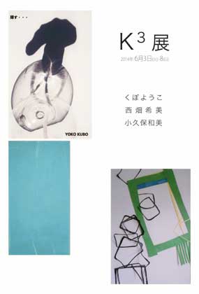 西畑希美さん、小久保和美さん、くぼようこさんによる版画、インスタレーションの作品展です 3人それぞれの作品をお楽しみください。