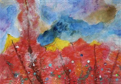 愛かなしみ、怒り、体感した感動を美しい色で動きのある抽象画に描いております。