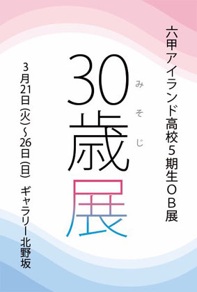 今年度三十路を迎えた六甲アイランド高校 美術・デザインコース5期卒業生の有志12名による作品展です。