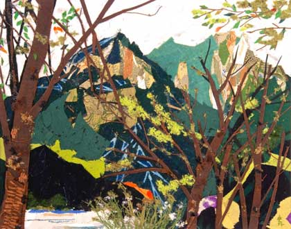 紬、ちりめん、絽など様々な古布を使い、貼り合わせて写実的に描かれた布絵の数々。