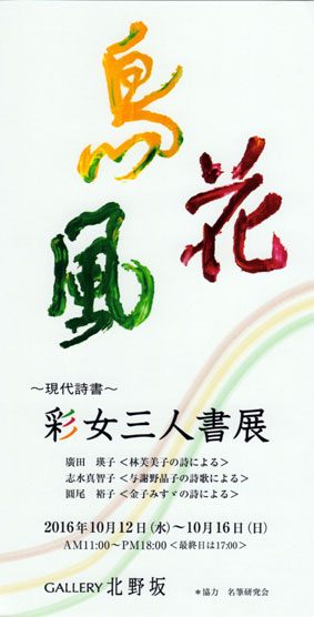 2016年10月12日(水)ー10月16日(日) = 現代詩書 = 彩女三人書展
