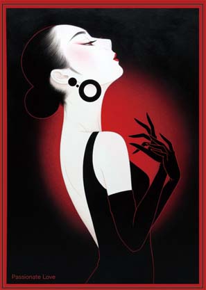 ノエビアのCMに代表されるデザイン化され、色彩のコントラストのはっきりした独特の美人画像からモノトーンの作品、ドローイングシリーズと呼ばれる水彩のような柔らかな作品、そして鶴田流淋派の確立を目指す「雪・月・花」などの自然を描いた作品まで、鶴田一郎作品の全貌を展覧頂く内容となっております。