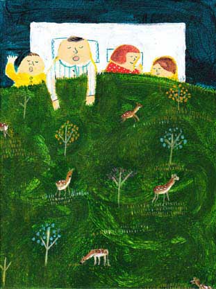 井上真規子さんによる油絵と、絵本作家の山本暁子さんによるイラストレーションの作品展です。