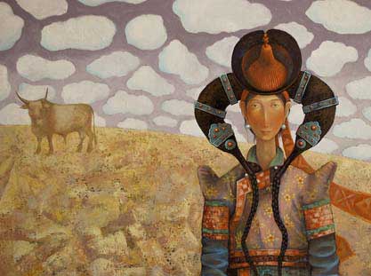 モンゴルの歴史と文化を題材にモダーンでエキゾティックな人物・花鳥・風景画で魅力を放つ新進の作家の作品をお楽しみください。