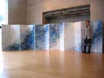 私は、やはり木目をテーマにした作品を展示いたしましたが、作品を準備するに当たって、画廊の空間との関係を今まで以上に思考することとなり、いい経験をさせていただきました。また、会場では、小曽根真CD“REBORN”をエンドレスで流し続け、作品そのものだけではなく、会場の空間をも楽しんでいただきました。平面作品1点で個展ができるんだという、勇気をもらった貴重な体験となりました。