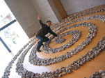床に置いたキャンパスの切れはしはひとつ一つが「一点」を構成する。